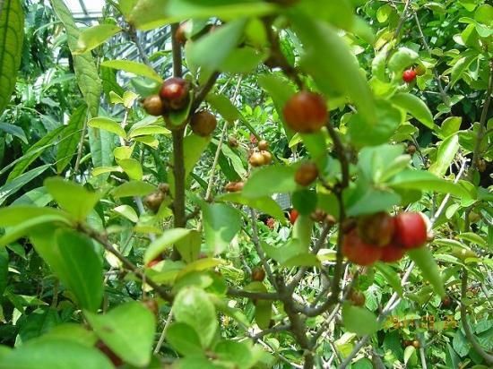 アセロラの発祥地はカリブ海周辺の西インド諸島、南アメリカ北部から中央アメリカが原産とされている。樹高2〜4m程の常緑低木。葉は全縁(鋸葉がない)で、長さ10cm程度。可愛らしい