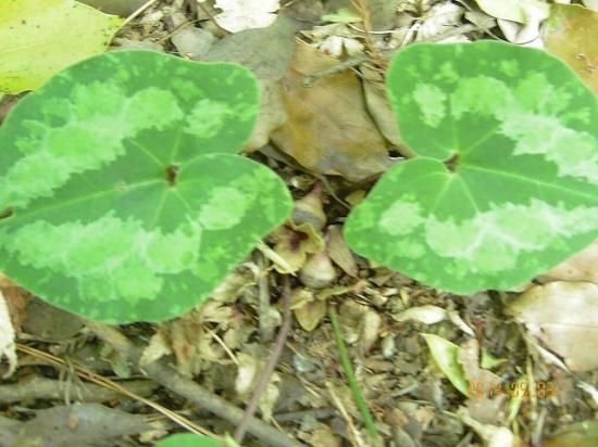 葉がハ−ト型で厚く、冬も枯れず常緑で一般に美しい雲状の白紋がある。こんな山の中に何故シクラメンがと思う位シクラメンの葉に似ている。(シクラメンはサクラソウ科なので全く違うが・・・)寒中でも葉があるのでこの名になっている。