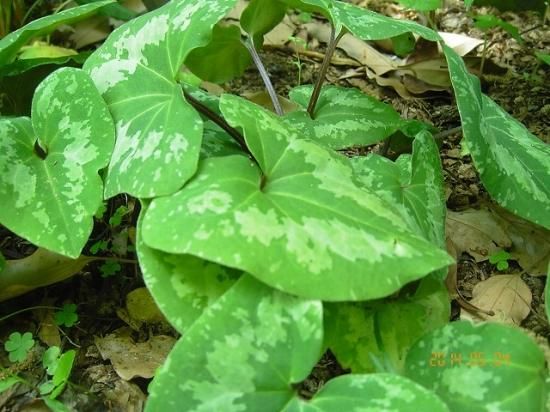 下:西宮市北山緑化植物園 葉には雲状の白紋がある。